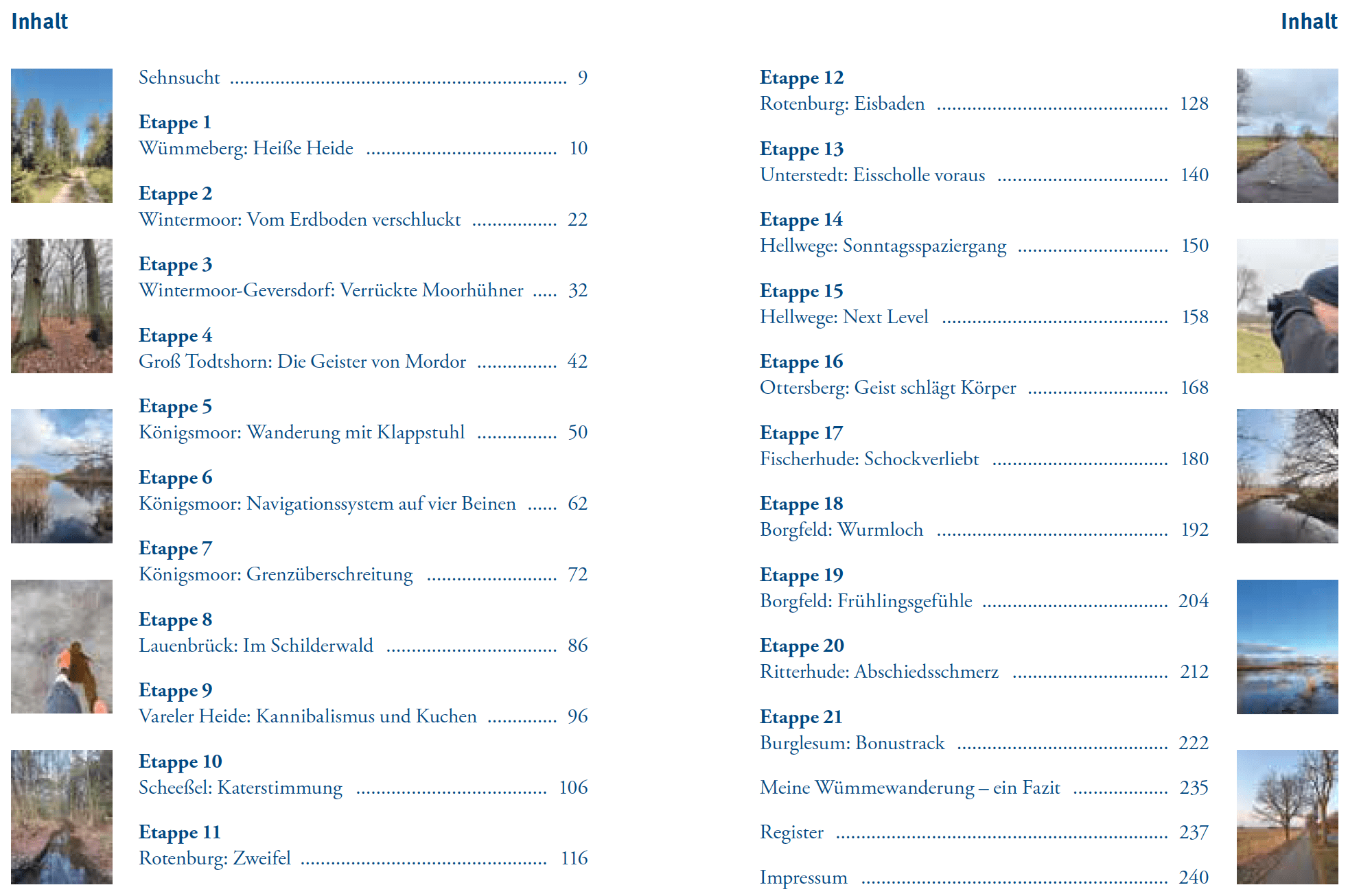 „Kann ich der Wümme von der Quelle bis zur Mündung folgen oder werde ich verzweifelt im Moor steckenbleiben und armselig verhungern?“, diese Frage beschäftigt Lucia Gefken, als sie ihr neuestes Wanderabenteuer plant. Sie möchte der Wümme von der Quelle bis zur Weser folgen. Gänzlich ohne markierte Wanderwege, sondern einzig auf ihr eigenes planerisches Talent angewiesen, startet sie bei sommerlicher Hitze in der Lüneburger Heide.