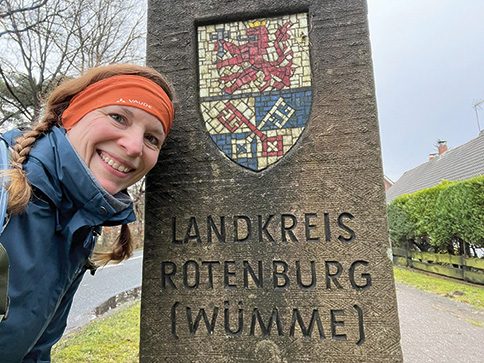 Schnell merkt sie, dass nicht nur ihre Fehlplanung sie regelmäßig an ihre Grenzen bringt, als sie sich in alltagstauglichen Tagesetappen durch verschiedene Landkreise, Städte, Naturschutzgebiete und Jahreszeiten arbeitet. Mal streikt die Technik, mal sorgen Überschwemmungen für nasse Füße, mal wird sie von verrückten Hühnern angegriffen oder verzweifelt an ihrer Selbstüberschätzung.